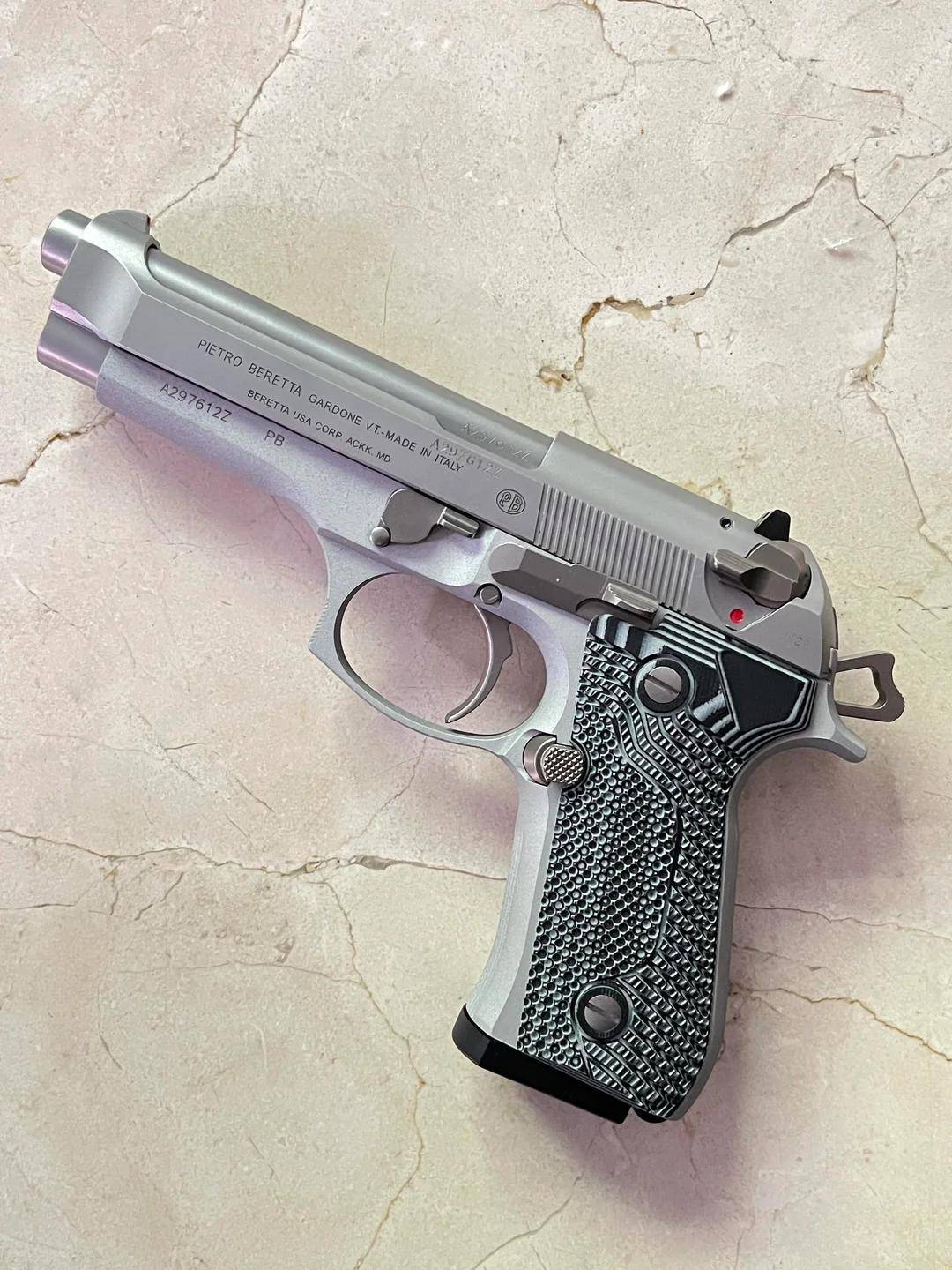 它不仅仅是一件防卫工具,更像是一件由精钢与铝合金切削而成的现代雕塑。每一个倒角、每一处防滑纹路,都透着伯莱塔家族跨越五百年的工艺底蕴,这种颜值上的统治力,让它成为了导演们塑造主角气场的首选利器。